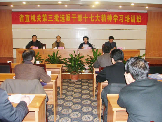 12月27日-28日,省直工委举办了省直机关第三批选派干部十七大精神培训班。来自省直机关的87名选派干部参加了本次培训。省直工委副书记王志军出席了开班式并作了动员讲话。